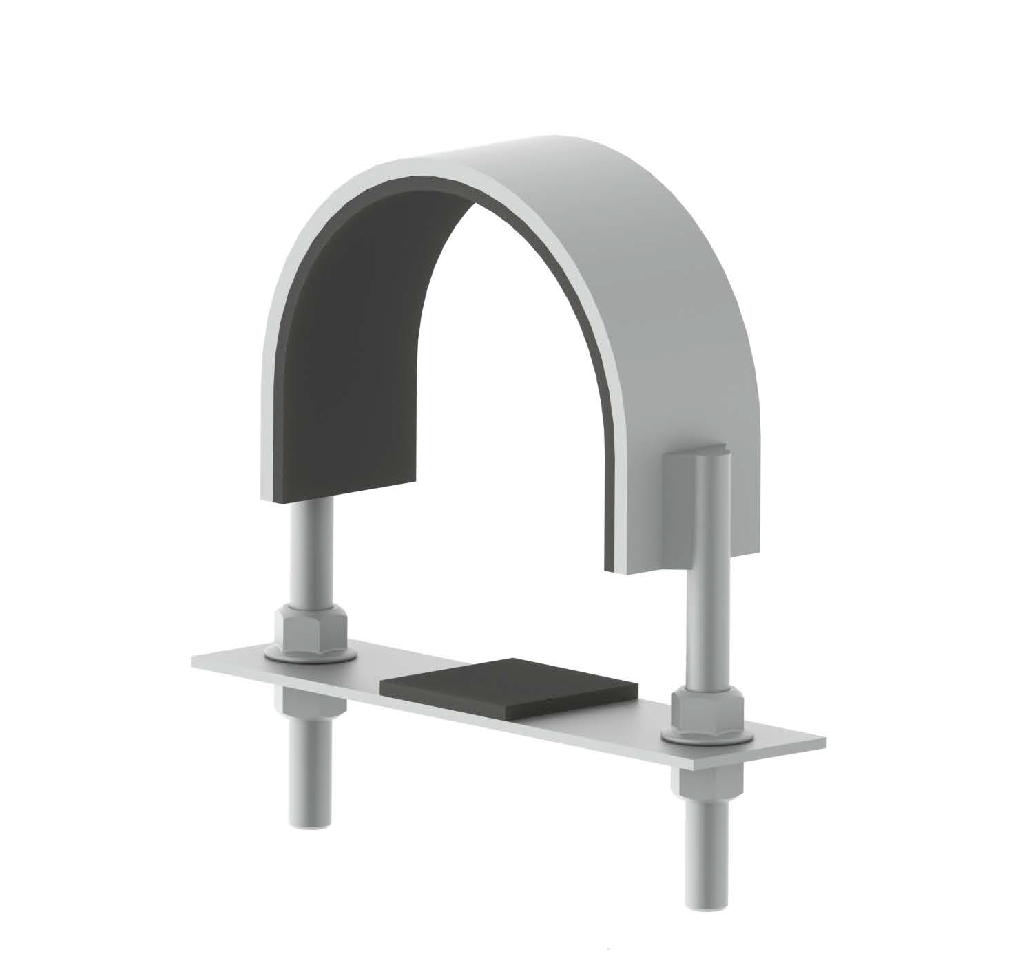 Хомут U-образный радиусный тип H предназначен для монтажа прутов, круглых балок и водопроводных, канализационных, газопроводных, отопительных труб из стали или чугуна, представляют собой U-образную деталь с резьбой на концах.